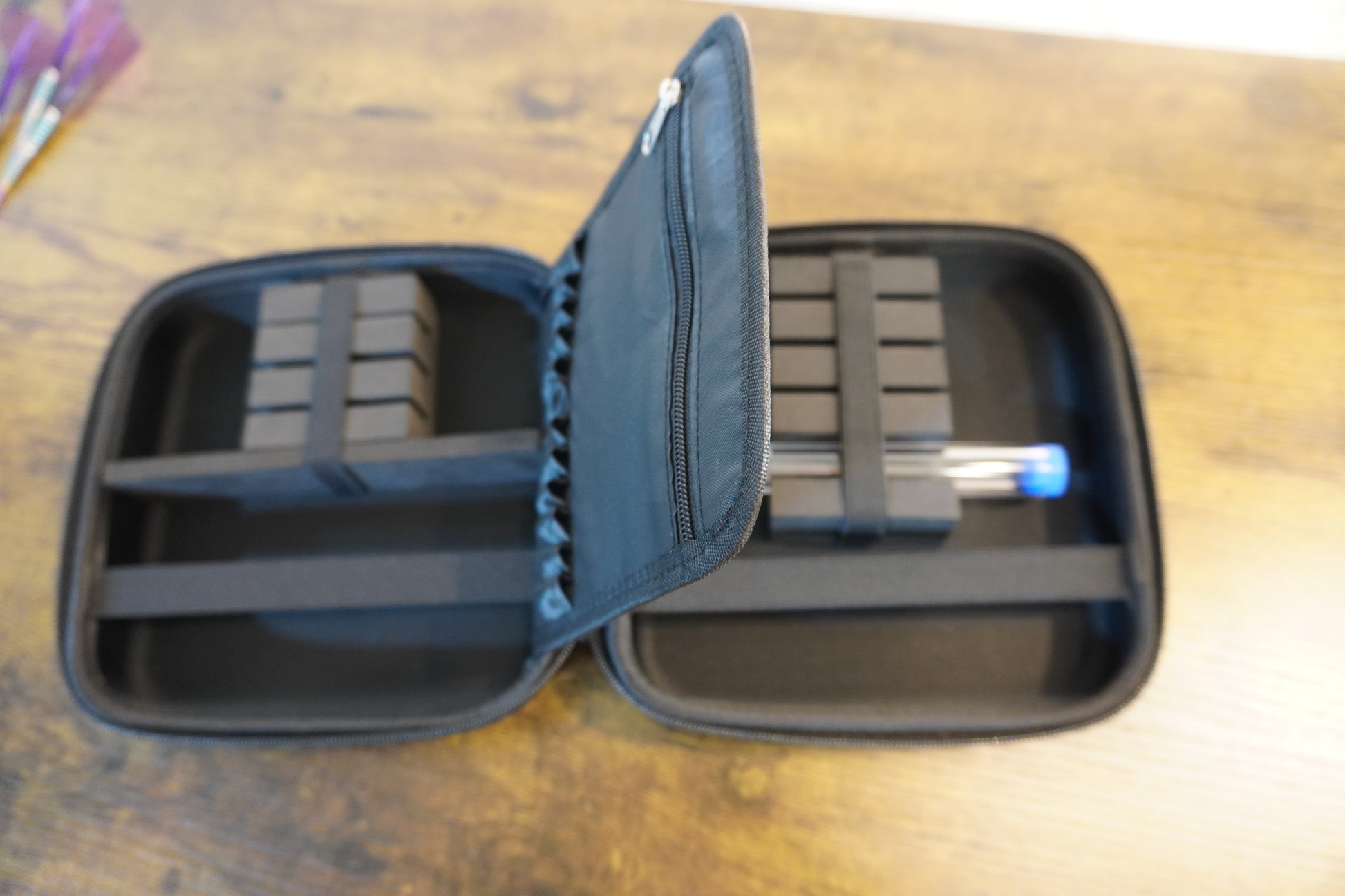Dieses Case bietet Platz für 2 Satz Darts.